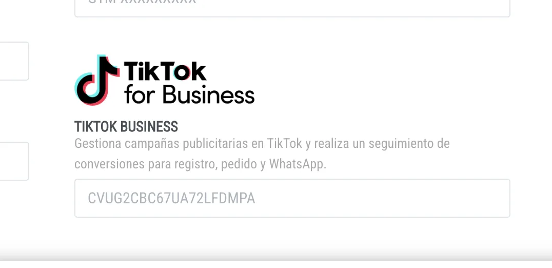 Don't use the code in this example, search for and copy your own code to your TIKTOK BUSINESS.
